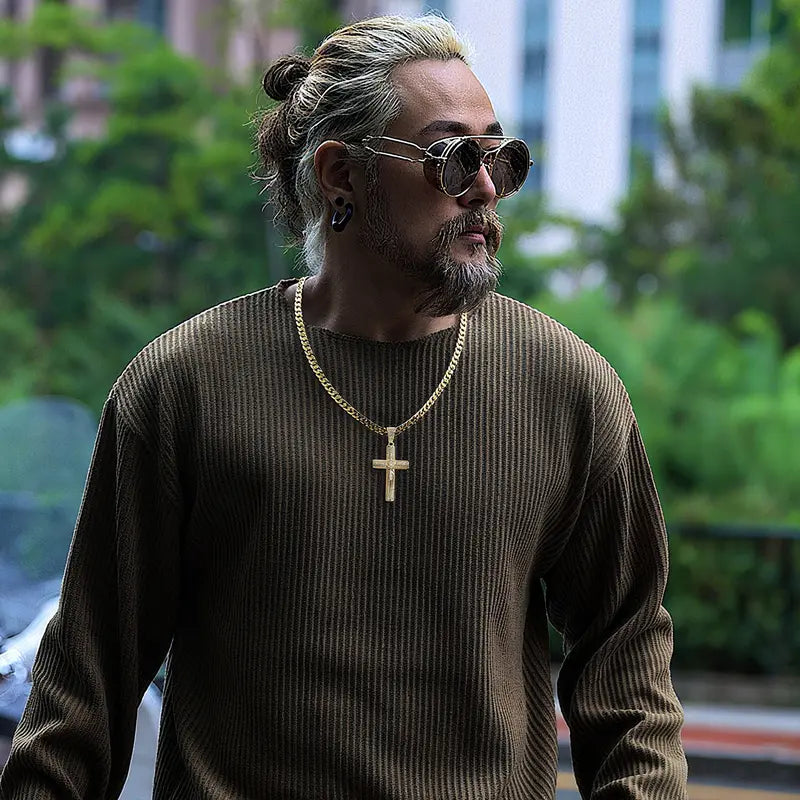 Advanced Nanotech & Tarnish-Free FinishUpgraded with advanced nanotechnology that forms a protective barrier—water-resistant, sweatproof, and tarnish-free for long-lasting wear. ·Jesus Crucifix Pendant with Exquisite DetailsFeatures a finely detailed crucifix pendant, symbolizing faith and devotion.